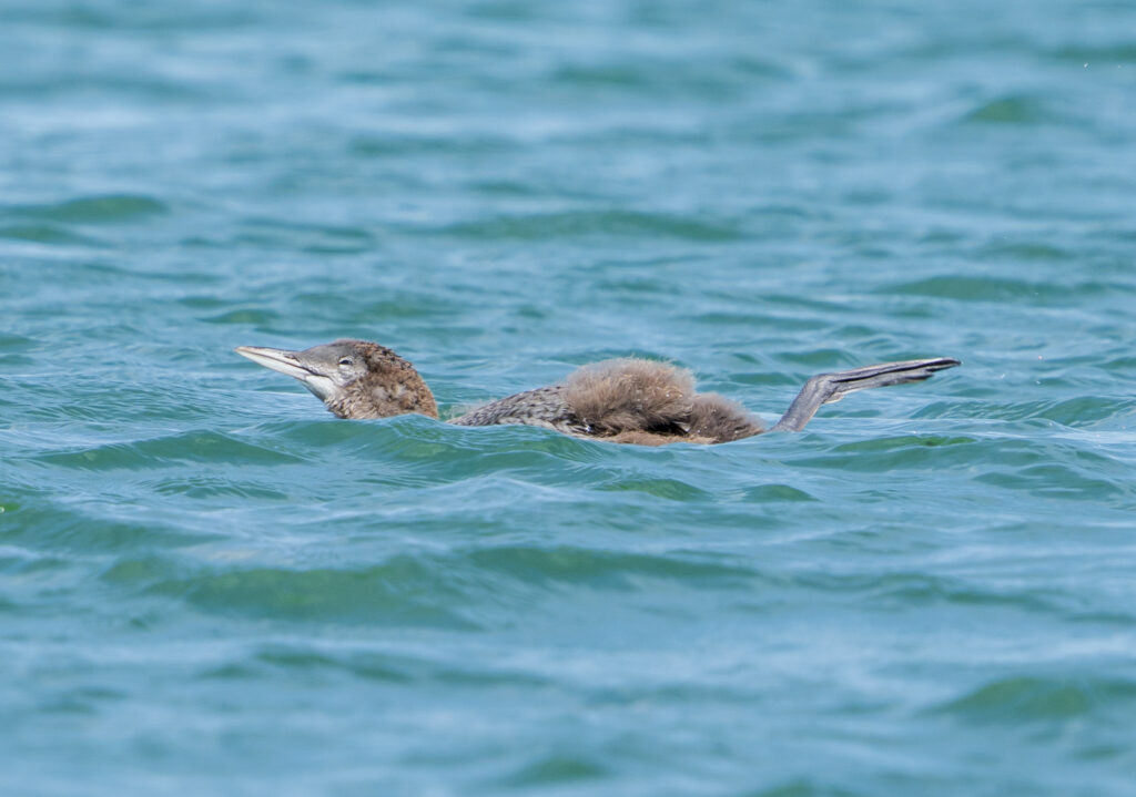 Most chicks have hatched by this time and ventured into deeper water. They can be hard to spot at this age, and they haven’t learned how to escape danger. Keep a sharp eye out for chicks in open water.